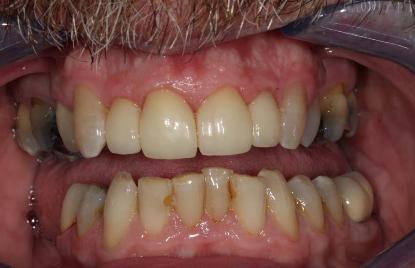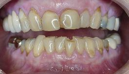 make-over. In this case, teeth #7,8,9,10 were restored with e.Max Crowns w/ gingival contour.