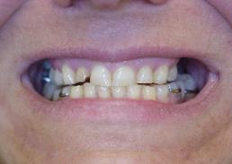 This young female patient did not look comfortable with her smile. As you can see this patient has facial bonny defect